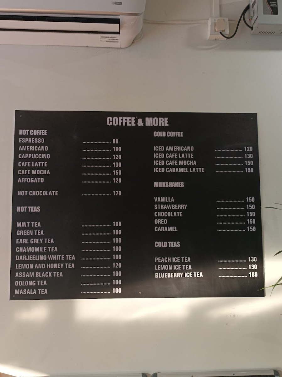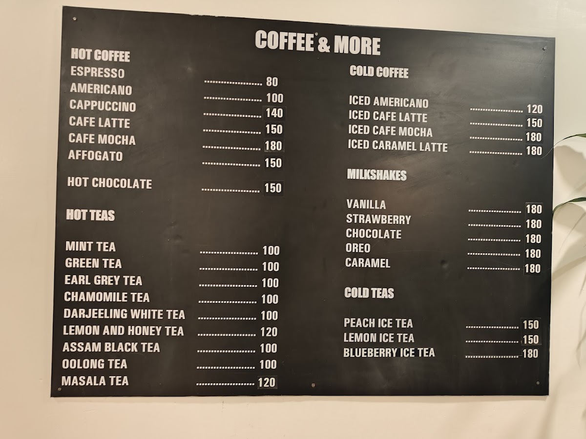 Hot Teas: The hot tea selection features classic varieties such as Mint Tea, Green Tea, Earl Grey, Chamomile, Darjeeling White Tea, Assam Black Tea, Oolong Tea, as well as flavored options like Lemon and Honey Tea and Masala Tea. These teas come in a consistent price range, offering a variety of flavors to suit different tastes.